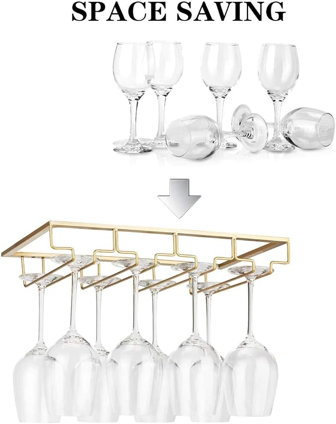 - š·SPACE SAVING: Offer you a neat and modern style kitchen, cabinet or mini bar. Our wine glass rack use the space under your cabinet as storage of your wine glasses, which takes little space.