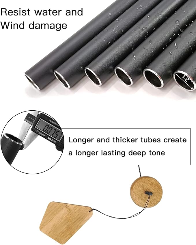 - Premium Wind Chimes- this outdoor wind chime’s surface covered with waterproof coating, resist the wind and water damage effectively. The wind chime strings are more corrosion-resistant nylon material, with a whole beech wood, and high-quality aluminum pipes, quality materials make this wind chime can stay beautiful for a long time