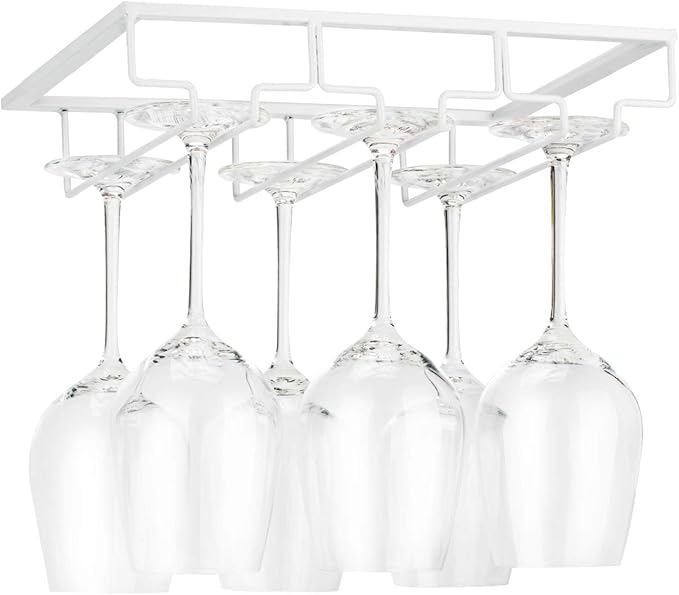 Wine Glass Rack - Under Cabinet Stemware Wine Glass Holder Glasses Storage Hanger Metal Organizer for Bar Kitchen White