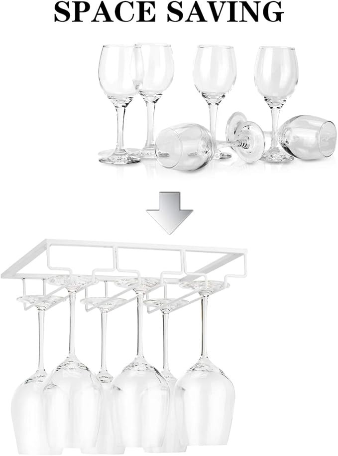 - š·SPACE SAVING: Offer you a neat and modern style kitchen, cabinet or mini bar. Our wine glass rack use the space under your cabinet as storage of your wine glasses, which takes little space.