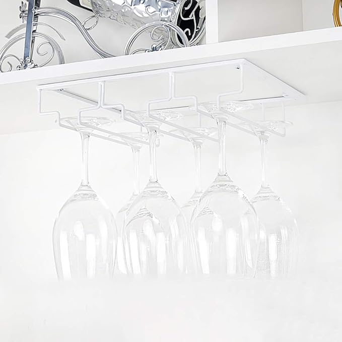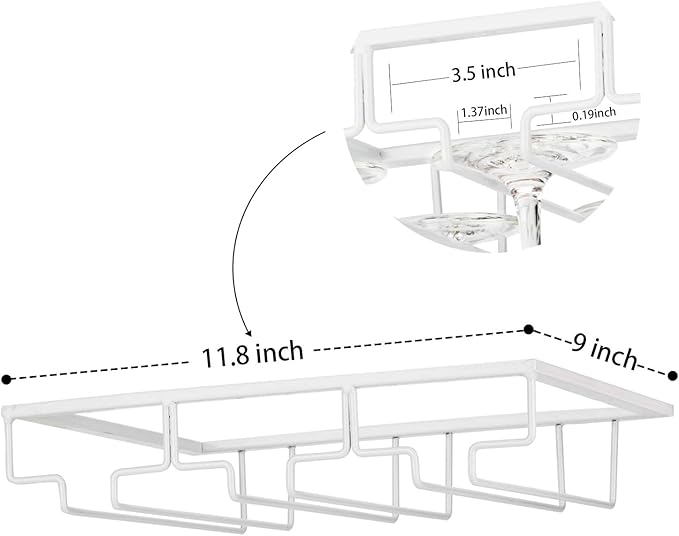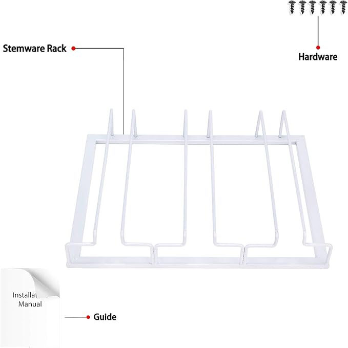- š·EASY TO INSTALL: Comes with the mounting hardware, no advance drilling advance required, just a few minutes to complete the installation. Organize your stemware collection, keep your wine glasses under the cabinet.