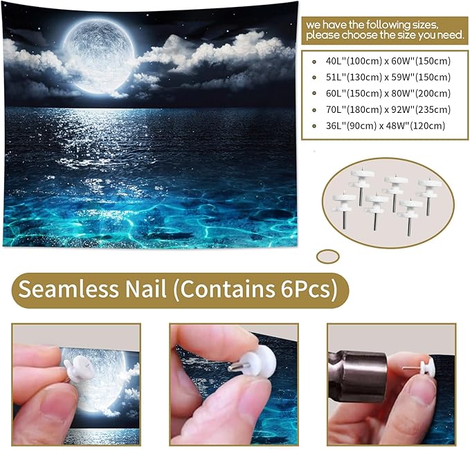 - Feature:The moon wall tapestry uses digital printing technology,it makes the wall tapestry become a perfect work of art and brings visual enjoyment.This scenery tapestry will make complete makeover of your wall or ceiling or your bed. Adds a rich, pleasing and an ethnic feel to your home.