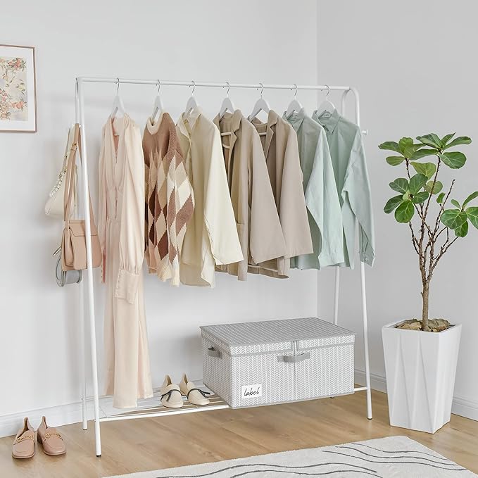 GRANNY SAYS Closet Storage Bins with lids, Fabric Storage Box with Lid, Clothes Bins Storage for Closet, Shelf Baskets for Living Room Wardrobe Shelves, Jumbo, Gray/White, 1-Pack