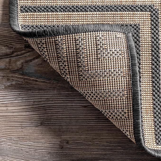 nuLOOM 4' x 6' Outdoor Area Rug, Casual Design With Striped Border, Stain Resistant, Highly Durable, For Patio, Balcony, Bedroom, Living Room, Dining Room, Bathroom, Dark Grey