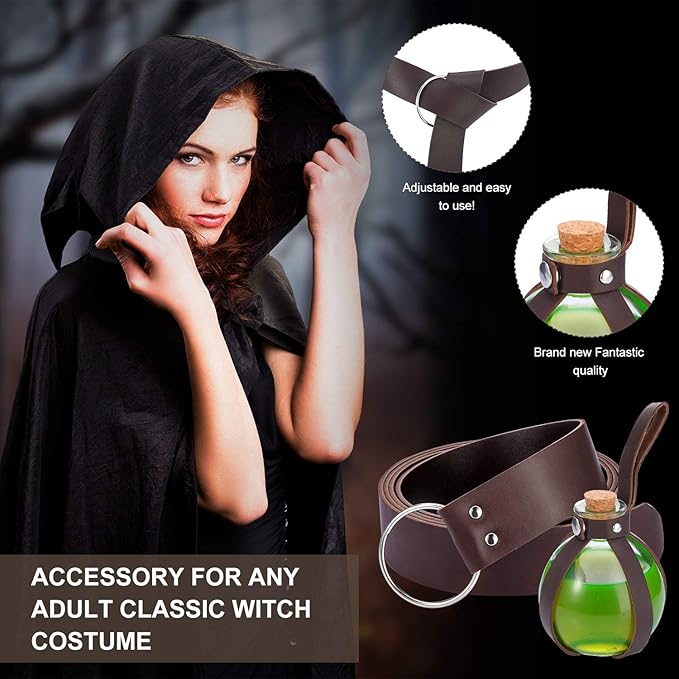- What you get: package includes 1 piece 200 ml clear glass cork-top spherical ball bottle, equipped with a medieval leather belt, a wonderful combination that will help you add the finishing touch for any witch or wizard costume