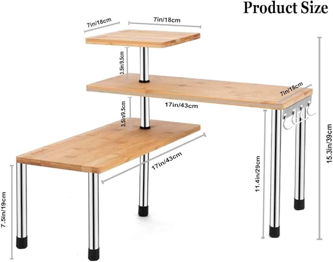 - Space-Saving Corner Shelf: Designed to fit perfectly into corners, this shelf optimizes your countertop space while providing extra storage for spices, utensils, or kitchen essentials
