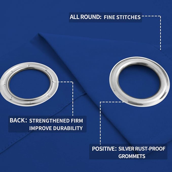 Easy-Going Blackout Curtains for Bedroom, Solid Thermal Insulated Grommet and Noise Reduction Window Drapes, Room Darkening Curtains for Living Room, 2 Panels (52x96 in,Classic Blue)