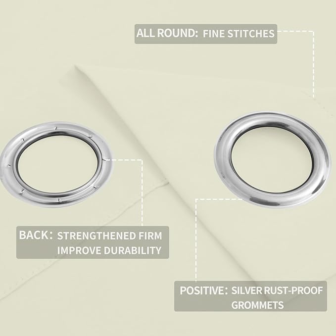 - Easy to Install: Each curtain panel has 8 silver metal grommets on top. Each grommet inner diameter is 1.6 inches, fits easily with standard curtain rods. Easy to hang, and slide smoothly. Perfect for office, bedroom, living room.