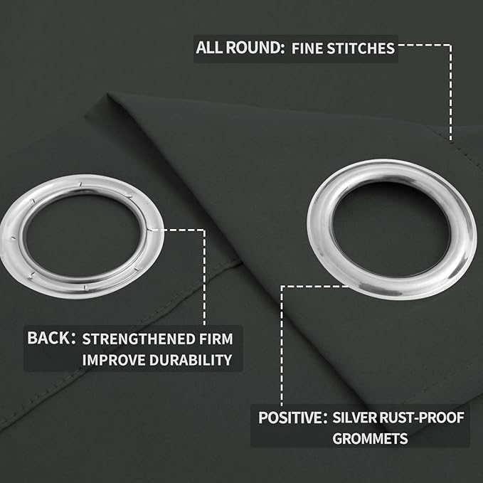 - Easy to Install: Each curtain panel has 8 silver metal grommets on top.Each grommet inner diameter is 1.6 inch, fits easily with standard curtain rods.Easy to hang, and slide smoothly. Perfect for office, bedroom, living room.