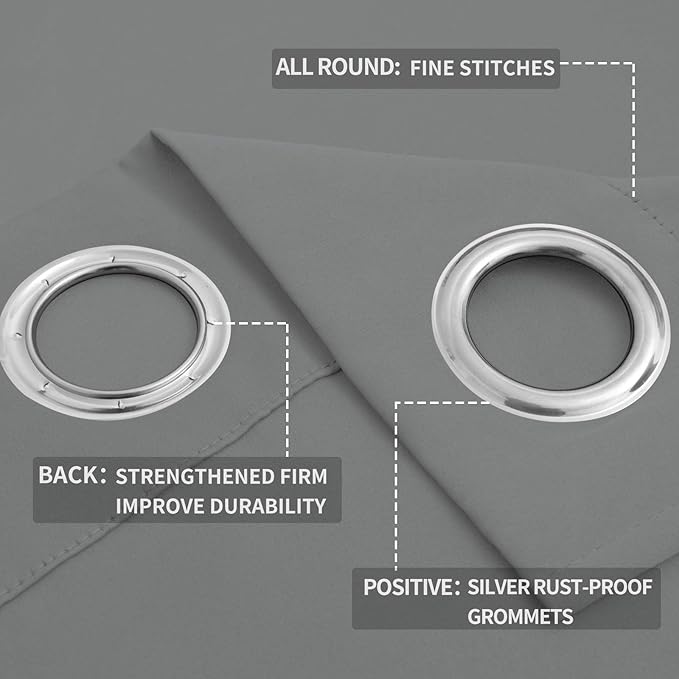 - Easy to Install: Each curtain panel has 8 silver metal grommets on top.Each grommet inner diameter is 1.6 inch, fits easily with standard curtain rods.Easy to hang, and slide smoothly. Perfect for office, bedroom, living room.