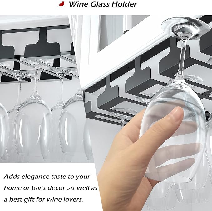 - 🍷Space-Saving - Helps you solve limited cabinet space, suitable for burgundy glasses, champagne glasses, cocktail glasses and other glass organizers. You can upside down wine glasses safely and securely, without worrying about them falling, and keep the kitchen bar tidy. The perfect gift for wine lovers.