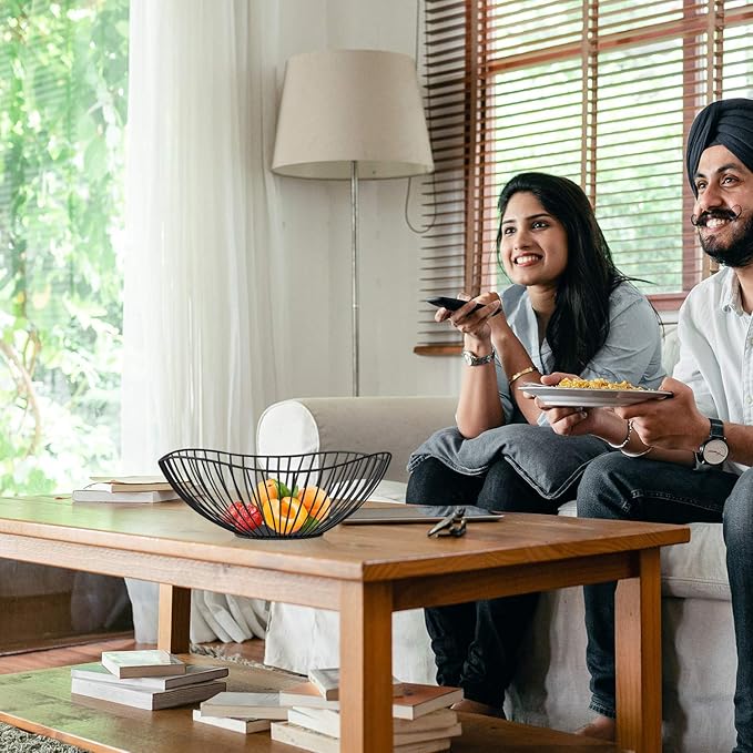 Metal Wire Fruit Basket, Black Fruit Bowl for Kitchen Counter, Fruit Holder Stand Storage Baskets for Countertop, Home Decor, Table Centerpieces, Vegetable Bowls for Fruits, Veggies, Snacks (Black)