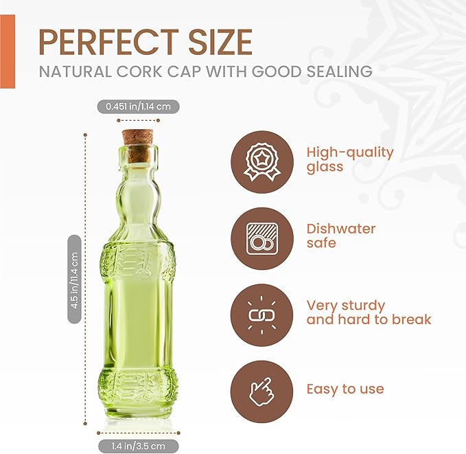 - 101 Use In Homes: Small vases, sand holder, message bottles, wedding favors, medicine jars, mini treasures holder, table decor, DIY projects, restaurants and small offices decorations, tree bottles, decorative wine bottles, shot bottles, liquor bottles, witch jars, perfume bottles, Christmas Gift, Halloween, Valentines Day etc.