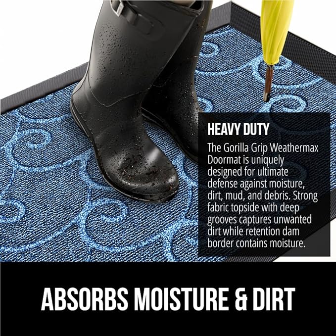 - THE ORIGINAL WEATHERMAX ALL SEASON DOORMAT: Gorilla Grip's Original WeatherMax doormat is built tough with a heavy duty, yet soft and flexible construction; deep grooves, beveled rubber border and retention dam help capture dirt, debris and moisture