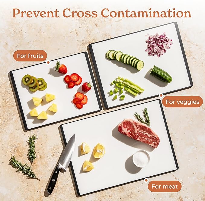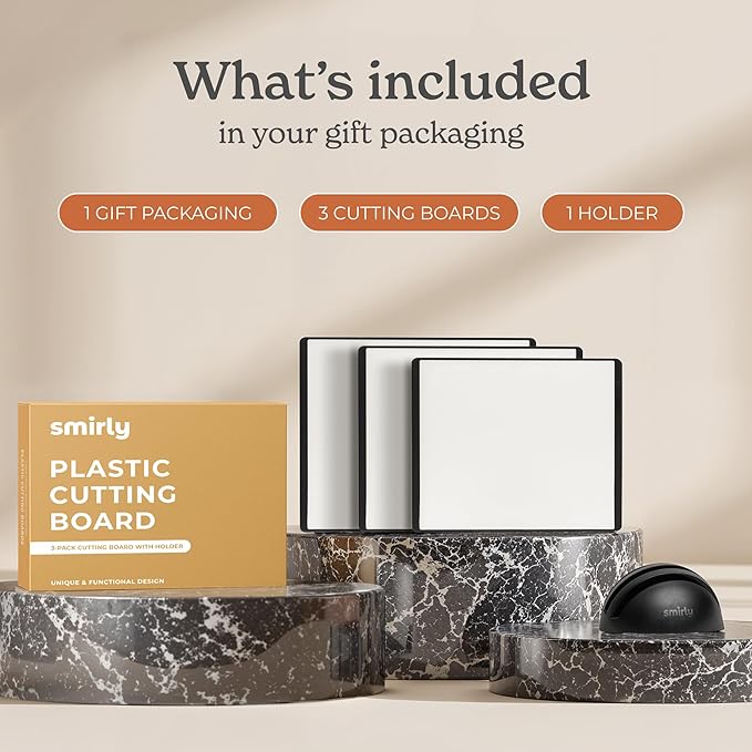 - Confident, Heavy-Duty: Tackle any prep task with Smirly's plastic cutting boards! Made from premium, non-porous, food-grade polypropylene, these chopping boards resist odors and stubborn stains. Experience lasting strength and safety in one indispensable kitchen essential