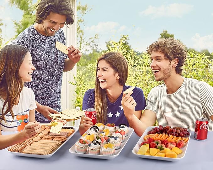 - Multiple Uses: Large Serving Platters and trays satisfy all of your need during your daily life, perfect for serving cupcakes, sushi, fruits, snacks, appetizers, turkey, sandwiches and chips/salad, dessert, classic white rectangular plates enough for all your entertaining needs