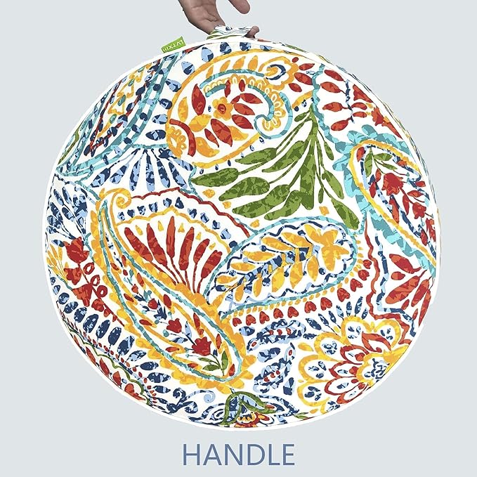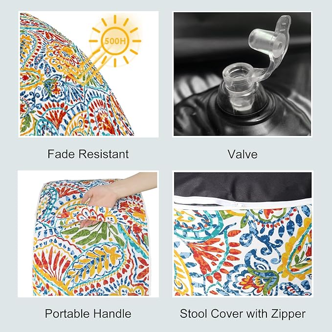 LVTXIII Indoor/Outdoor Inflatable Ottoman, All Weather Round Footrest Stool D21”x H9”, Portable for Patio Garden Camping or Home-Paisley Ummi Multi