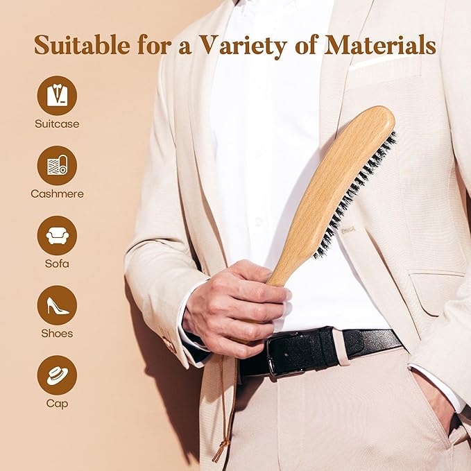 - REFRESH YOUR CLOTHES: The boar bristles are soft enough that they will not damage clothing, but stiff enough to remove lint, etc. Gently brushing clothes makes them look better and last longer. Not for very hard fabrics such as denim