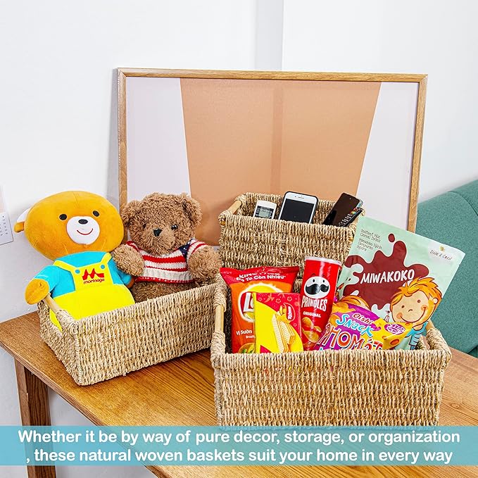 - ✅ Decorative Wicker Baskets - Bring organic style coastal charm to your home! They're made by nature round chunky weave seagrass baskets with handles that provide extraordinary warmth and texture to any space. Crafted by hand of finely woven seagrass, these handy and eye-catching baskets score extra points for being an organizational tool.