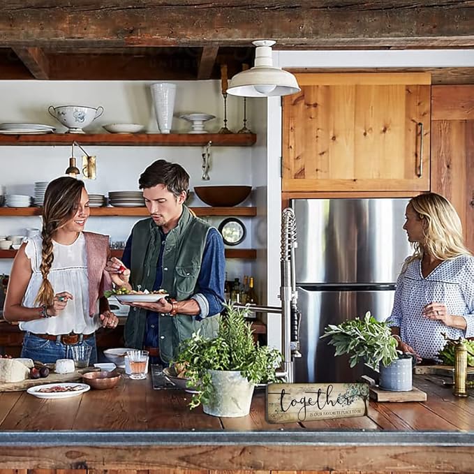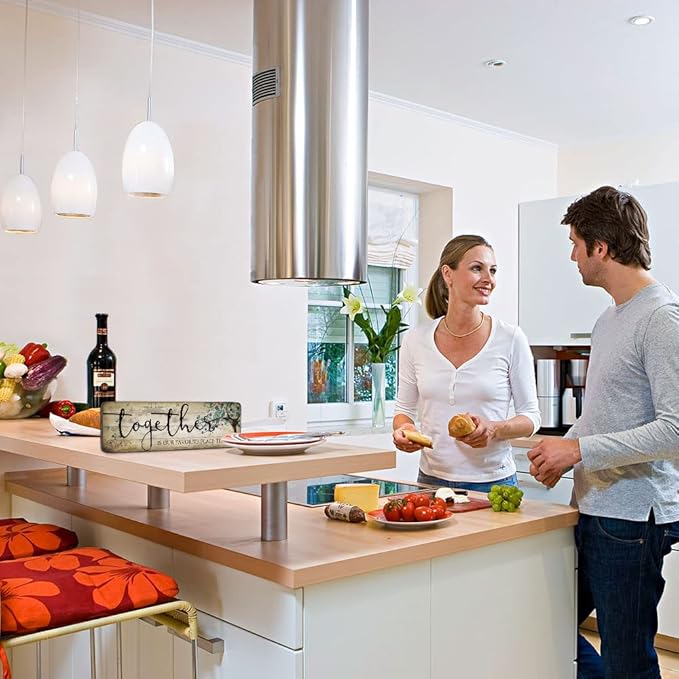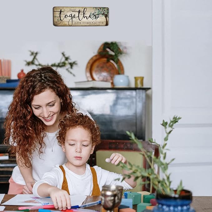 Family Art Decor Inspirational Quotes Wall Hanging Sign - Together is Our Favorite Place to Be - Motivational Home Art Decor Wood Plaque Sign 16"x5"