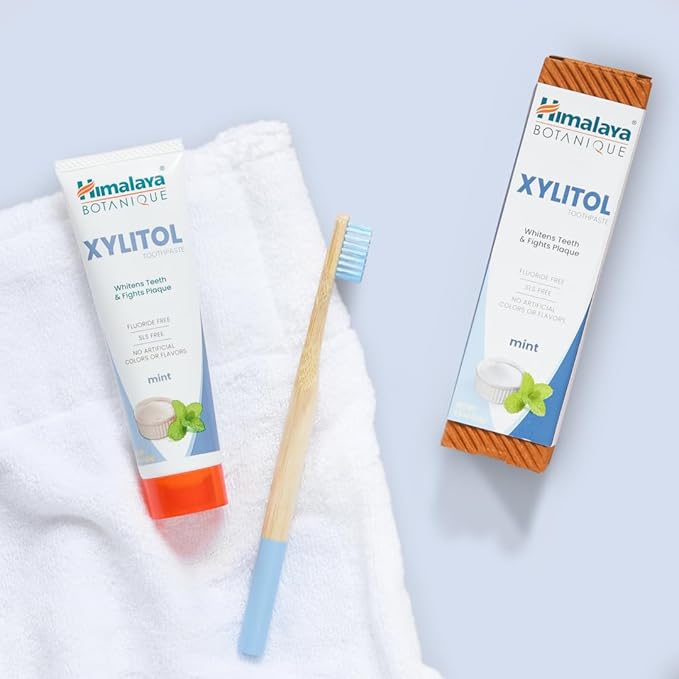 Himalaya Botanique Whitening Antiplaque Toothpaste with Xylitol, Fluoride Free, for Plaque Reduction & Gentle Whitening, 4 oz, 4 Pack