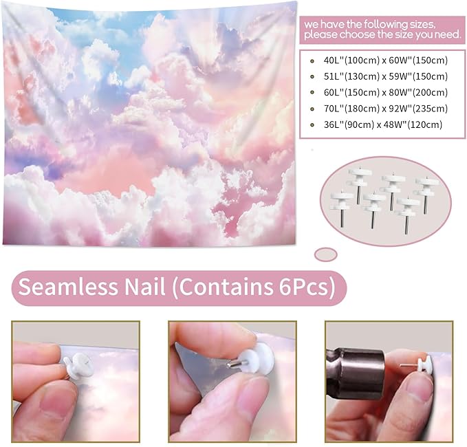 HVEST Pink Cloud Tapestry Colorful Abstract Clouds Natural Landscape Tapestries Wall Hanging for Bedroom Living Room Teen Dorm Indie Decor Poster Blanket,80x60 Inches