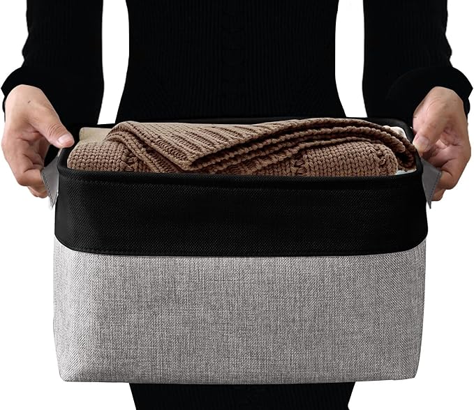 - Sturdy Construction: DECOMOMO closet storage bins are reinforced with upper metal frame and 2.5mm MDF fiberboard bottom to keep the baskets upright. Comes with dual faux leather handles with the weight bearing capacity of 25 lbs.