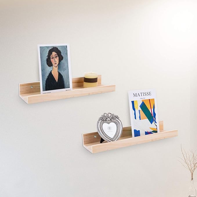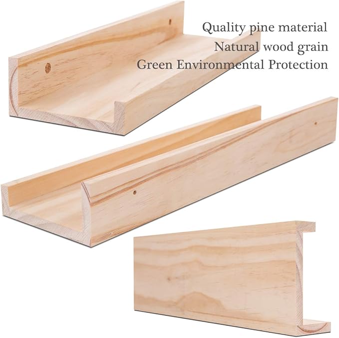 - Rustic Wood Shelves :Wall shelves is made of natural wood, Healthy and tasteless,They are sturdy enough to hold your favorite collections, family photos(as picture ledge shelf), Kid books, decorative items,cosmetics or plants.