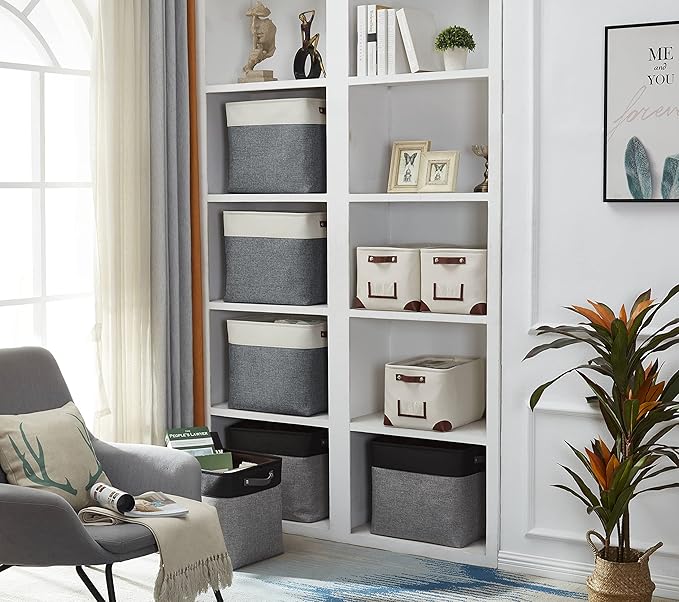 - Saves Space & Easy Maintenance: DECOMOMO's storage bins for shelves are collapsible for space-saving when not in use. EVA fabric baskets are easy to clean, dust the basket or spot clean with light soapy water with a soft cloth.