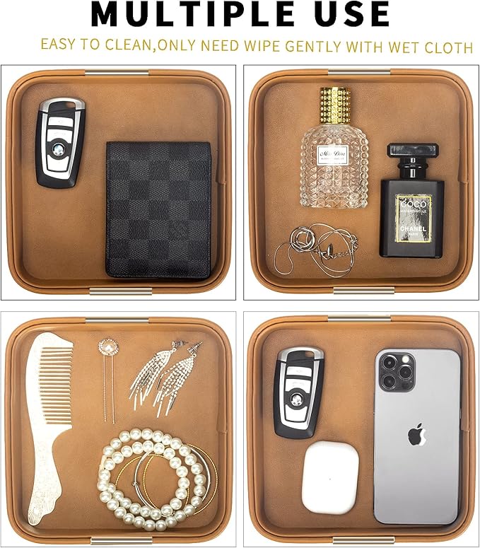- 【Special Craft】The leather used in this tray is treated with a special process to make it soft and smooth. This ensures that your items will not be scratched or damaged when placed in the tray.