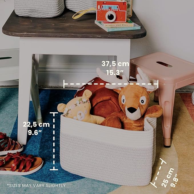 - All-Purpose Cube Storage Baskets – These 15” x 10” x 9” rope storage baskets are ideal for keeping your everyday home life more organized and provide plenty of compact storage space for arts and crafts, classroom decor, kid’s toys, or nursery storage and room accessories