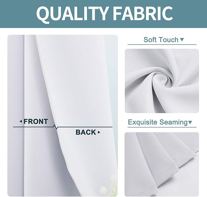 - QUALITY FABRIC: These thick living room curtains work well in noise reducing and privacy protection. Same solid color on both sides. The material feels soft with no chemical smell, safe for kids room and nursery room.
