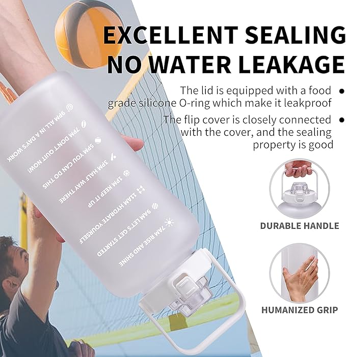 - 💪【Use Note & Purchase Tips】Do not drop it! Not dishwasher safe! Clean it with baking soda and vinegar, Not fill hot water.Not keep water cold. If there is any problem, please contact with us through your order. We will handle it immediately with a best solution for you. Enjoy the reusable tritan gallon water bottle.To be a better you!