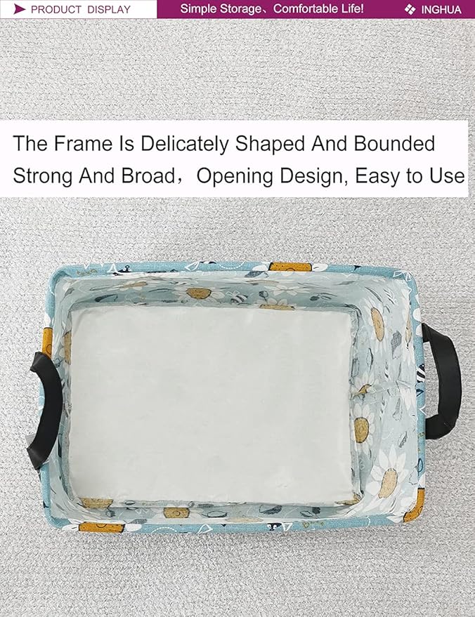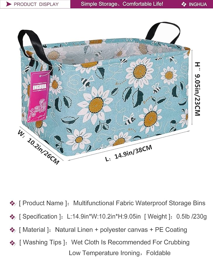 Rectangular Storage Basket Fabric Organizer Bin for Toys,Books,Clothes,Gifts,Pets-Perfect for Home,Office,Nursery,Dorm,Shelf(Rec Sunflower)
