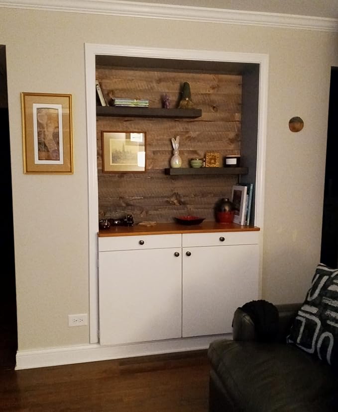 - DIMENSIONS & FIT - BEFORE YOU ORDER: 1. Measure your space, make sure the shelf will fit. 2. If you have any hesitation about color or texture, message us for FREE SAMPLES. It is much easier and less expensive than returning large items. The colors do not look the same from device to device. If you are in question, please use a tape measure before ordering. Sometimes it helps to put painter's tape on the wall to visualize.