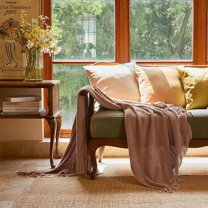 lifein Pink Throw Blanket for Couch, Soft Boho Decor Bed Throw,Cozy Chenille Knitted Small Farmhouse Lightweight Throw for Spring(Pink,50 * 60")