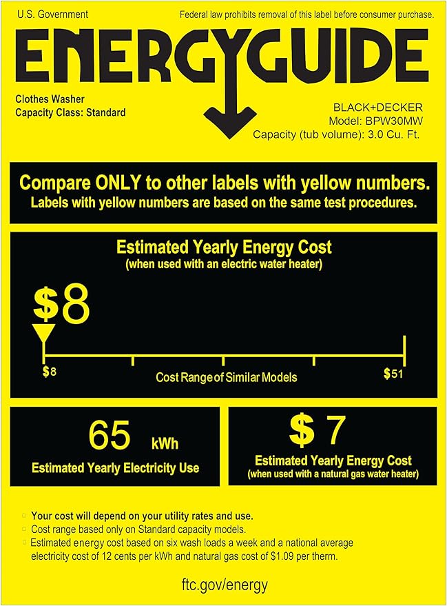 BLACK+DECKER 3.0 Cu. Ft. Portable Washer, 26.5 lb. Capacity Washing Machine, 6 Cycles, Quick Connect Sink Adapter and Drain Hose Included, Transparent Lid & LED Display, BPW30MW, White