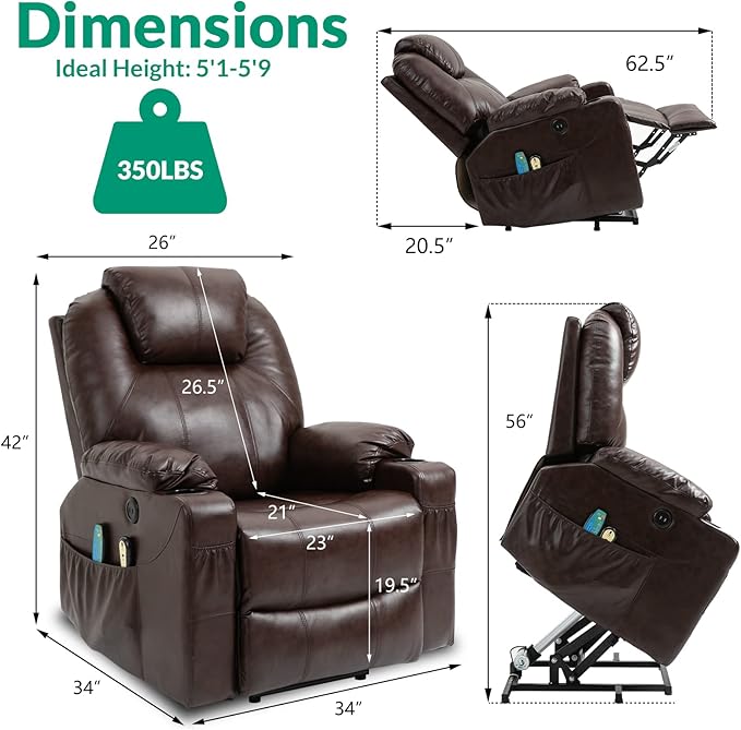- 【Power Lift Recliner】 - The TUV certified motor equipped recliner can lift you up when you want to get up from chair, by pressing a button on the remote control, it lifts or reclines smoothly and quietly, help the elderly stand up easily without adding stress to back or knees. And it features reclining to different angles by electric control, you can lie down in a cozy position and take a rest, or TV watching, let you relax from the busy day