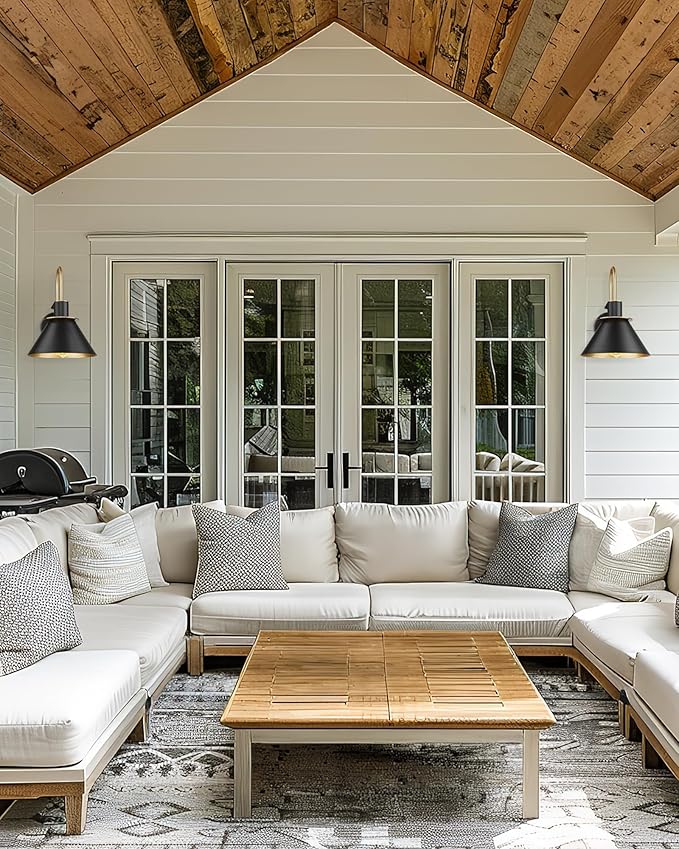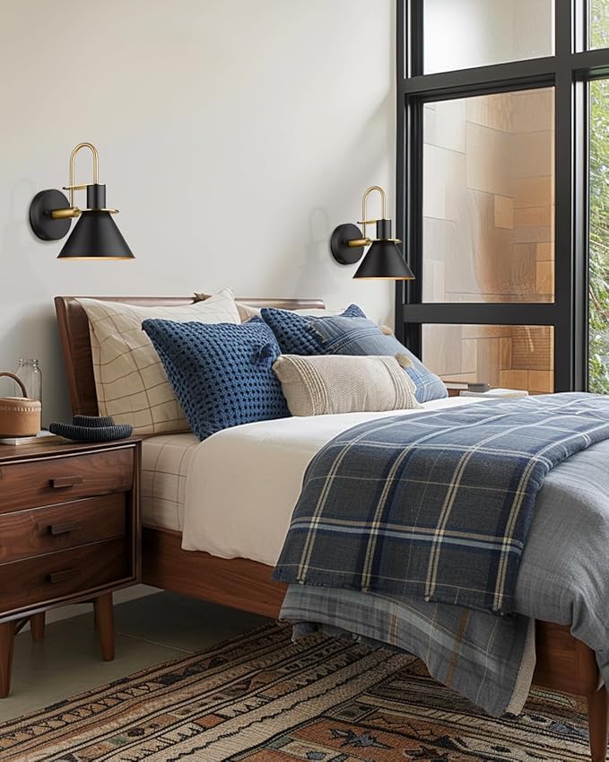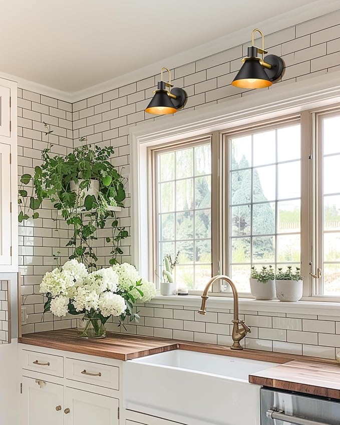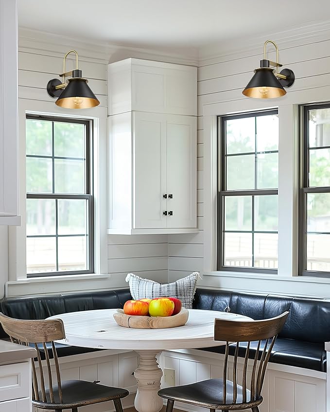 - 【Modern Design】 This single wall lamp compliments the look of almost any indoor or semi-outdoor space, matte black finish decored with golden, the copper interior reflects the light to form an extremely accent contrast. (Attention: Moisture-proof but not waterproof, please keep it away from water)