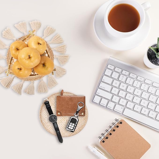 - 【High Quality Multifunction】: 100% hand-woven bohemian wall jewelry made of natural yarn, seagrass,fibers,bamboo. At the same time the supplies can not only be used as indie room decor display can also be used as fruit,food, jewelry, ornaments, storage,keys,for home trays or placemats ideal.