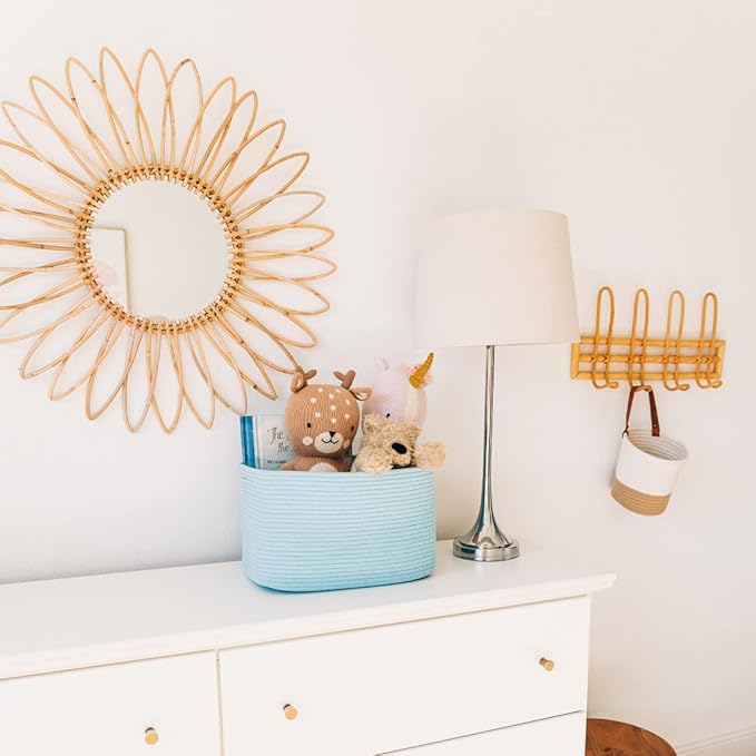 - Premium Cotton Rope Weave – These beautiful rainbow toy baskets are woven with high-quality, all-natural cotton to give them the right balance of softness and durability. This makes them great for bedrooms, nurseries, and laundry rooms as rainbow room decor.