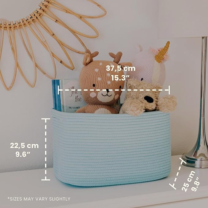 OrganiHaus Woven Storage Baskets for Organizing, Cotton Rope Organizer Bins for Shelves, Closet & Nursery, Dog Toy Basket, Decorative Bins for Toys, Towels & Books - 15x10x9, Blue