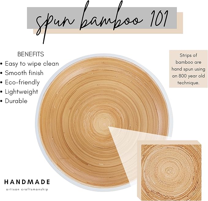 - Add the warmth of handmade, natural materials to your home while keeping a modern, sleek look and feel with this spun bamboo bowl, whether you need a fruit bowl for kitchen counter, decorative bowl for the living room, or centerpiece for the dining table.