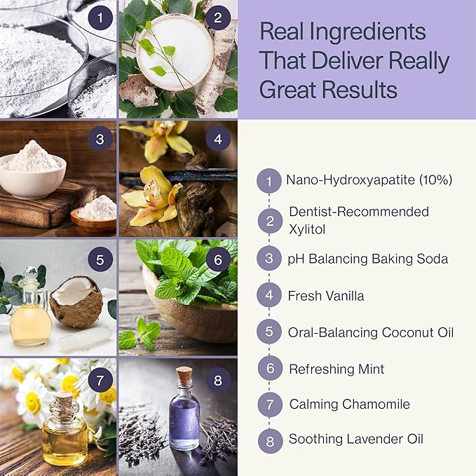 - GENTLE TEETH WHITENING - Whitens teeth to reveal a brighter smile using the power of natural ingredients - coconut oil, baking soda, and nano-hydroxyapatite!