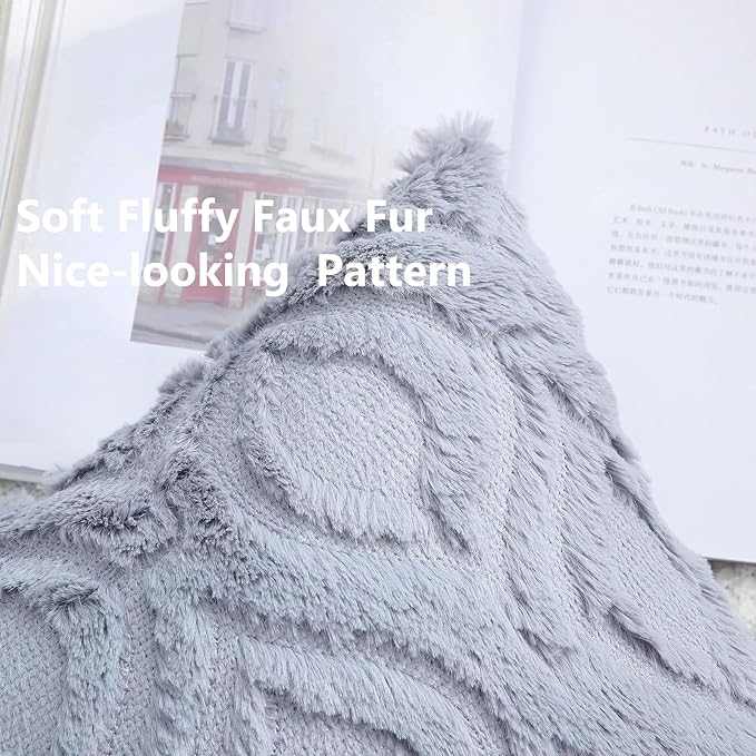 decorUhome Fall Throw Pillow Covers 24x24 Inch Set of 2, Soft Plush Decorative Faux Fur Blue Grey Solid Couch Pillow Covers, Accent Farmhouse Neutral Square Euro Pillow Cases for Sofa Bed Living Room