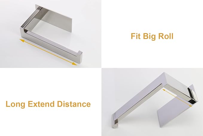 - DURABILITY & RUSTPROOF: Toilet paper holder construct of 304 stainless steel. Suitable for moisture bathrooms and fumes kitchens to used. Moreover, it large area adhesive side can bear weight up to 16 LB.