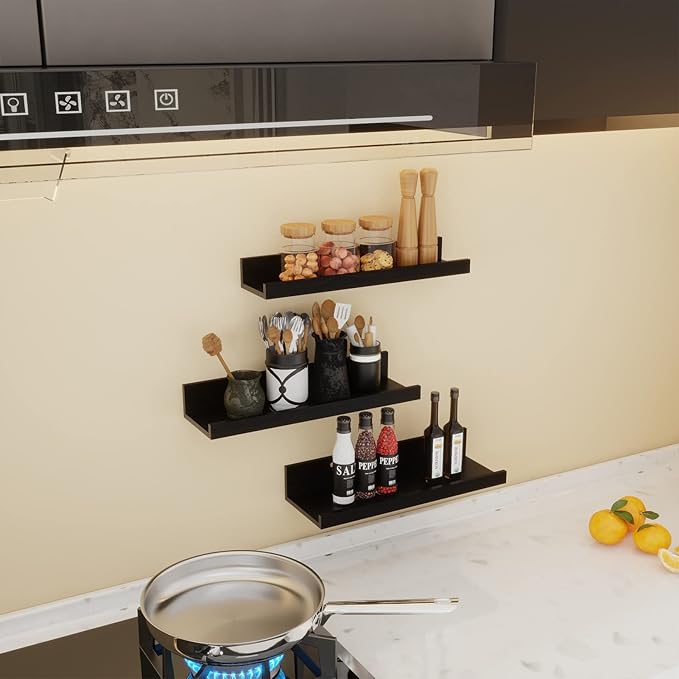 - Multifunctional Shelves Sets: These 3 wall shelves have same 16β length but slightly different width that suit your needs of display and storage. You can tidy up and display bathroom products, spices, small plants, pictures and collectibles from bathroom, bedroom, kitchen to living room and office.