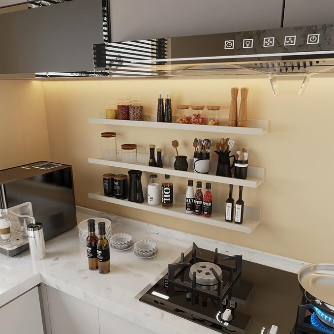 - Versatile Wall Shelves: These wall ledge shelves accommodate various items such as pictures, albums, small plants, spices, jars or keepsakes in bedroom, kitchen, bathroom, living room or office. These floating shelves for wall suit all your needs and keep your wall less cluttered.
