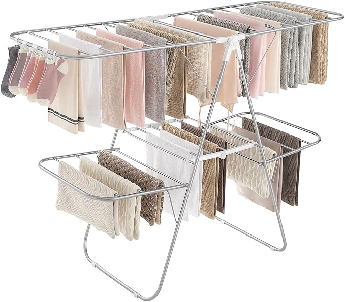 - No Assembly, Hassle-Free to Move & Store: No assembly is needed to get this laundry rack ready. Just open it up to use! And it's easy to fold the rack up to transport it to the laundry room or the patio, or stash it under your bed to save space