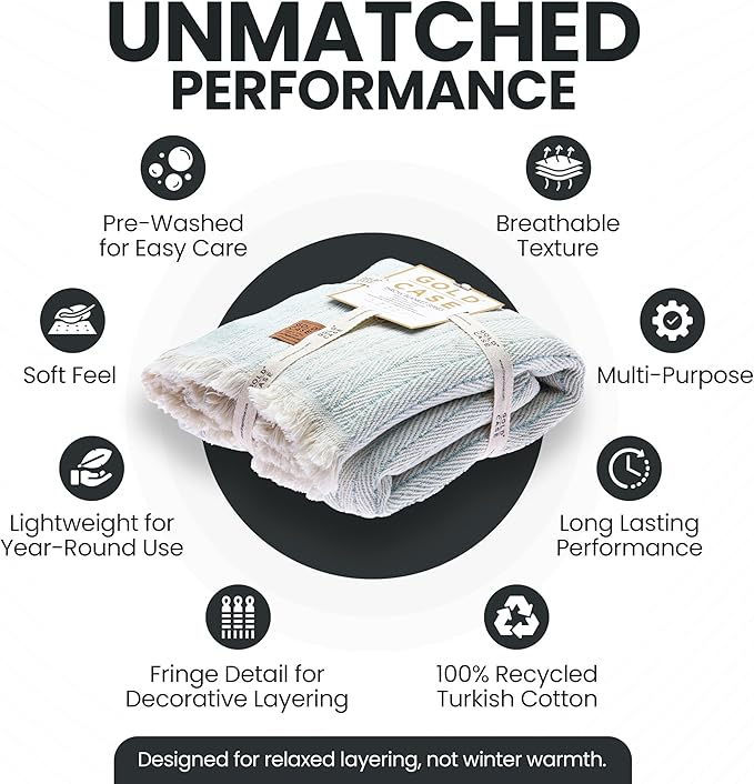 - LIGHTWEIGHT LAYERS FOR RELAXED MOMENTS: Woven from 100% recycled Turkish cotton, this breathable and cute throw blanket adds a soft, textured touch to your space; made for layering on the couch, tossing over your shoulders, or adding a laid-back look to your decor